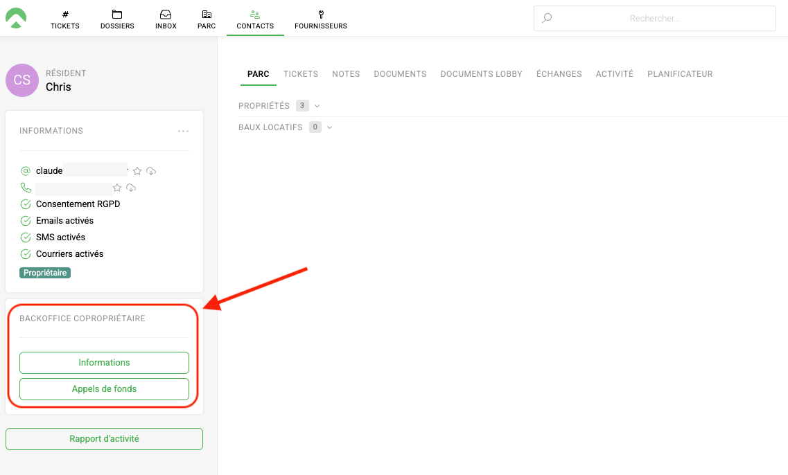 Informations : redirection vers la fiche copropriétaire Lobby