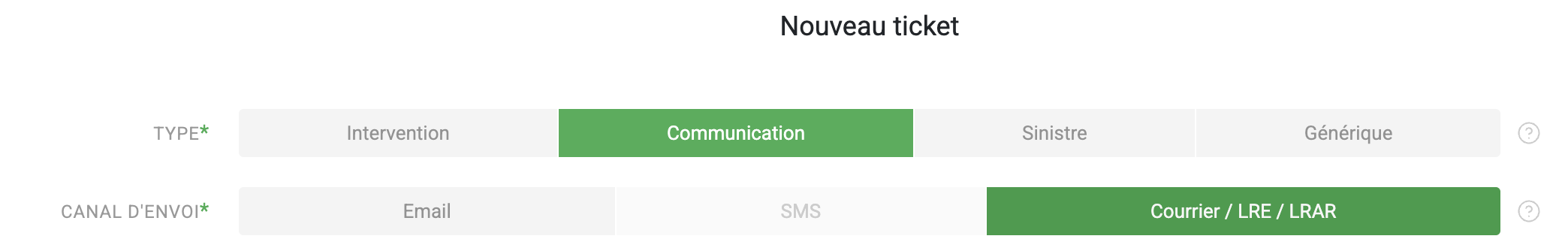 Pour le choix du type d'envoi, vous devez d'abord compléter le formulaire et cliquer sur 'Valider', puis vous aurez l'option (cocher la case en fonction de votre choix) :