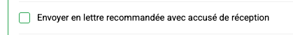 Pour envoyer en LRAR, vous devez compléter le formulaire et cliquer sur 'Valider', puis vous avez l'option de cocher la case pour envoyer en recommandé avec accusé de réception.