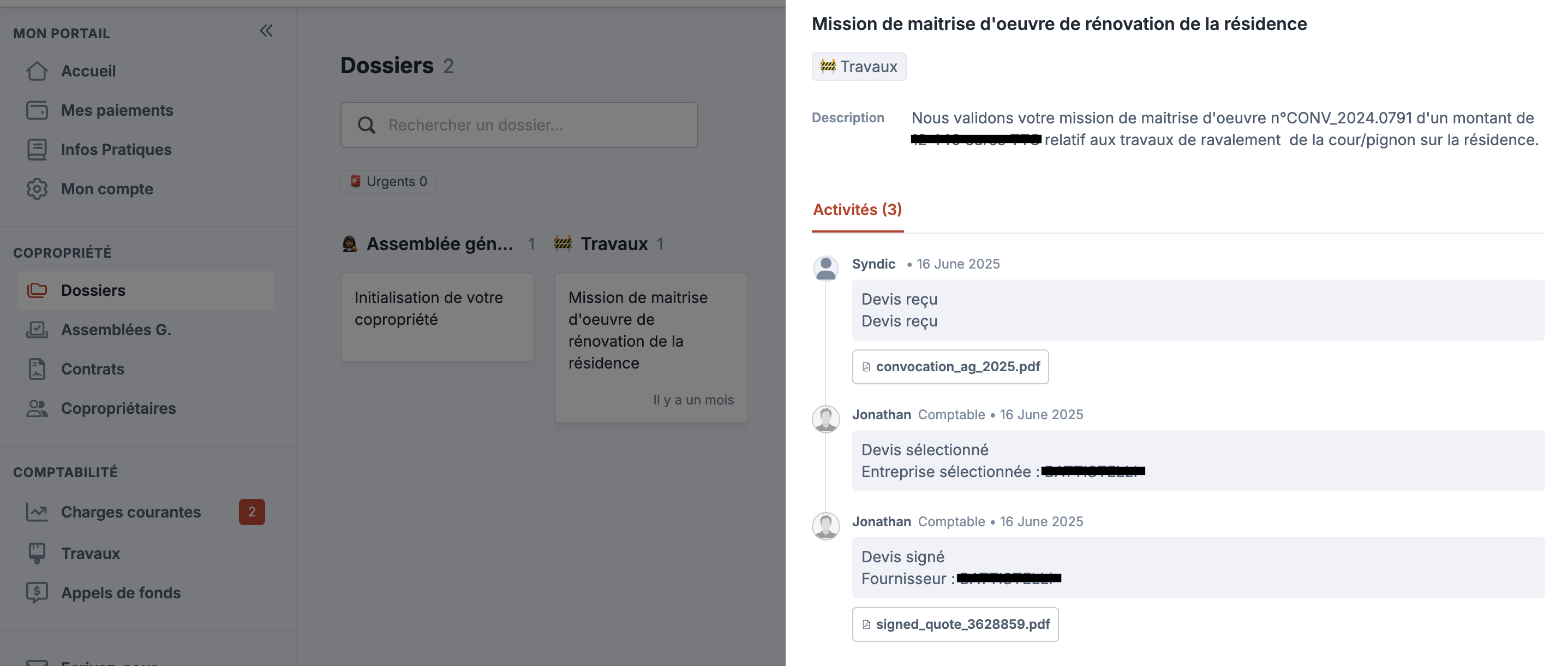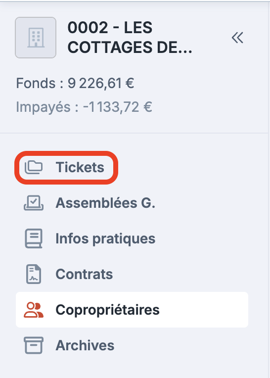 Les copropriétaires ont accès à ces tickets depuis leur extranet, sous forme de dossiers.