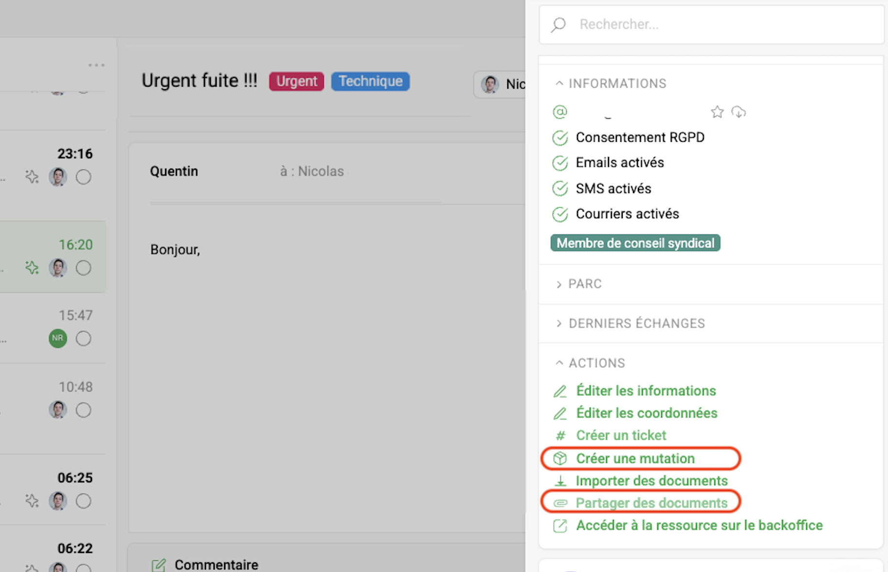 ℹ️ Lorsque vous faites une mise à jour / ajoutez des documents sur un Ticket Inch, les informations remontent sur le dossier visible par le copropriétaire.