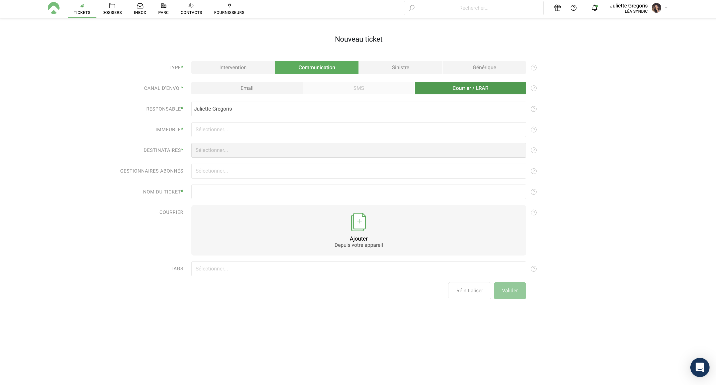 Vous avez la possibilité d'envoyer un courrier / LRAR.